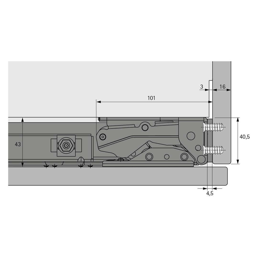 Hettich Führungsscharnier mit Traglast Evisys mit Dämpfung, Für Kühlschrankumbauten, Öffnungswinkel 115°
