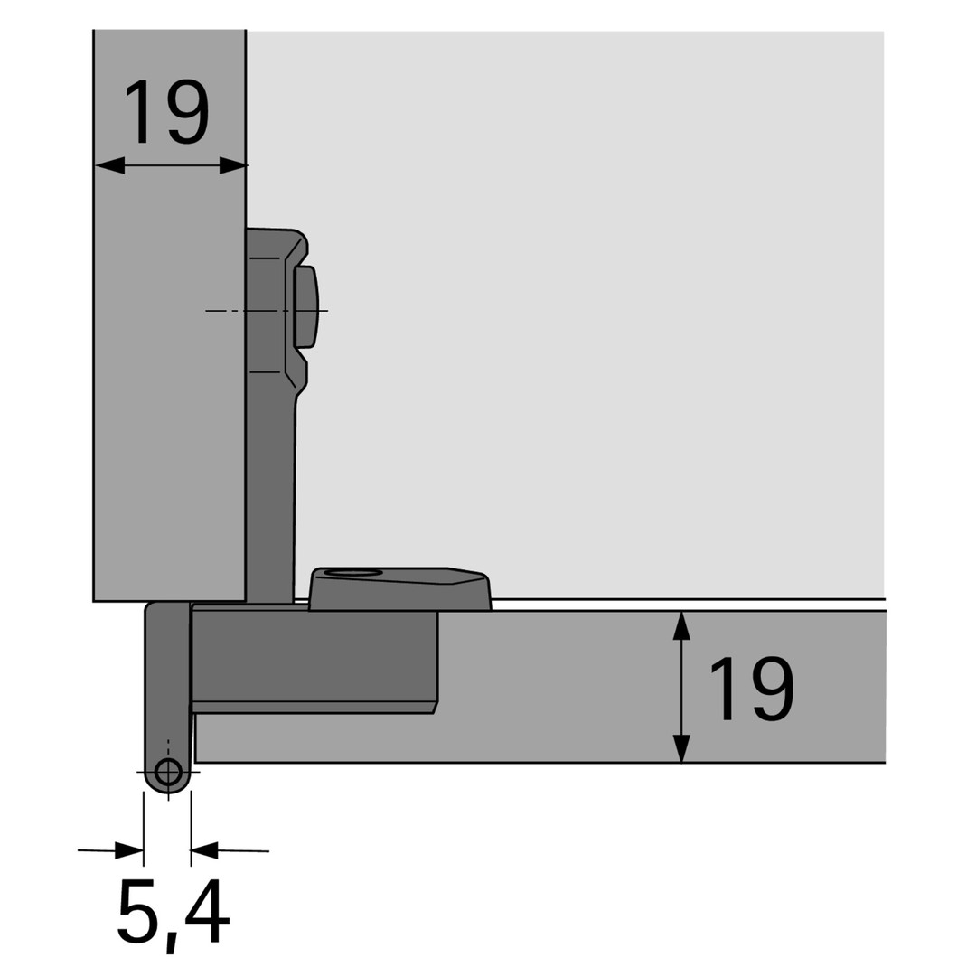 Hettich Grundscharnier Selekta Pro 2000, 230 °, Auflage 6,5 mm, mit Spreizmuffen, vernickelt