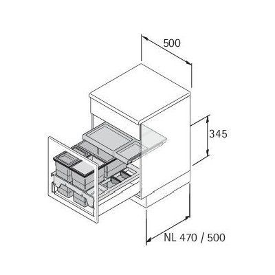 • Einbauhöhe 345 mm ab Oberkante Schubkastenboden