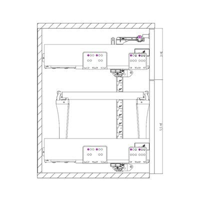 Konstruktionsbeispiel Schließsystem für doppelwandiges Schubkastensysten ArciTech, Einbaubreite variabel / Lochreihe 32 mm / einseitige Verriegelung