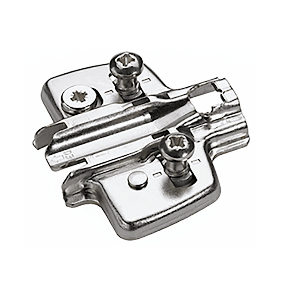 Hettich Kreuzmontageplatte mit Direkt-Höhenverstellung, vernickelt, Lochreihe 37 x 32 mm, mit Euroschrauben (für Bohrung ø 5 x 12 mm), Distanz 5,0 mm