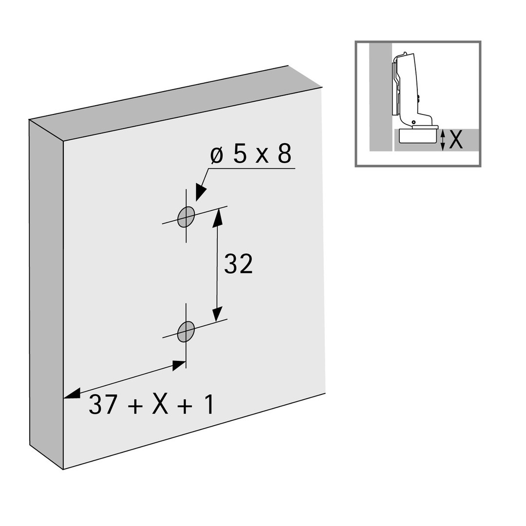 - Montage mit Euroschrauben (für Bohrung ø5 x 8 mm)