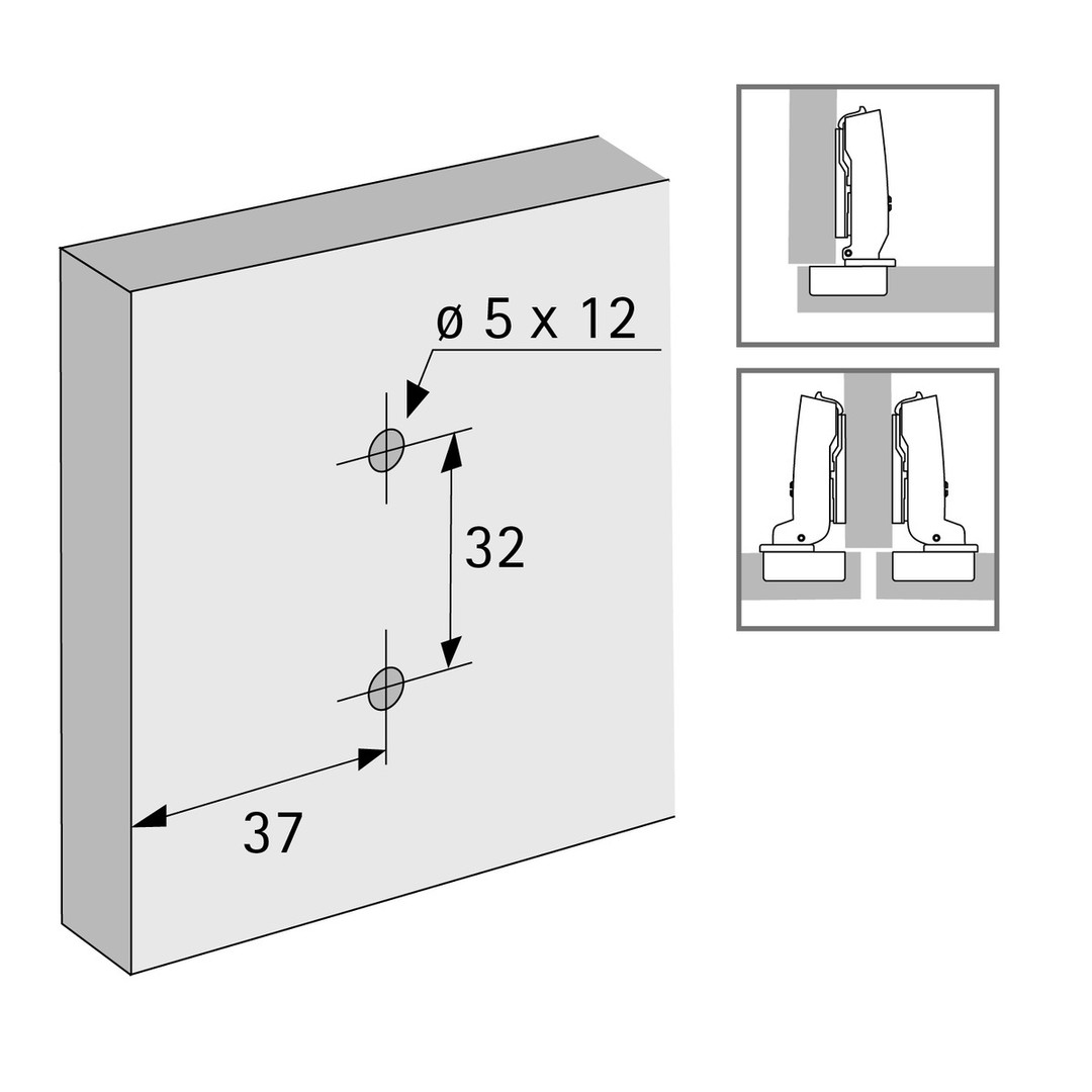 - Montage mit Euroschrauben (für Bohrung ø 5 x 12 mm)