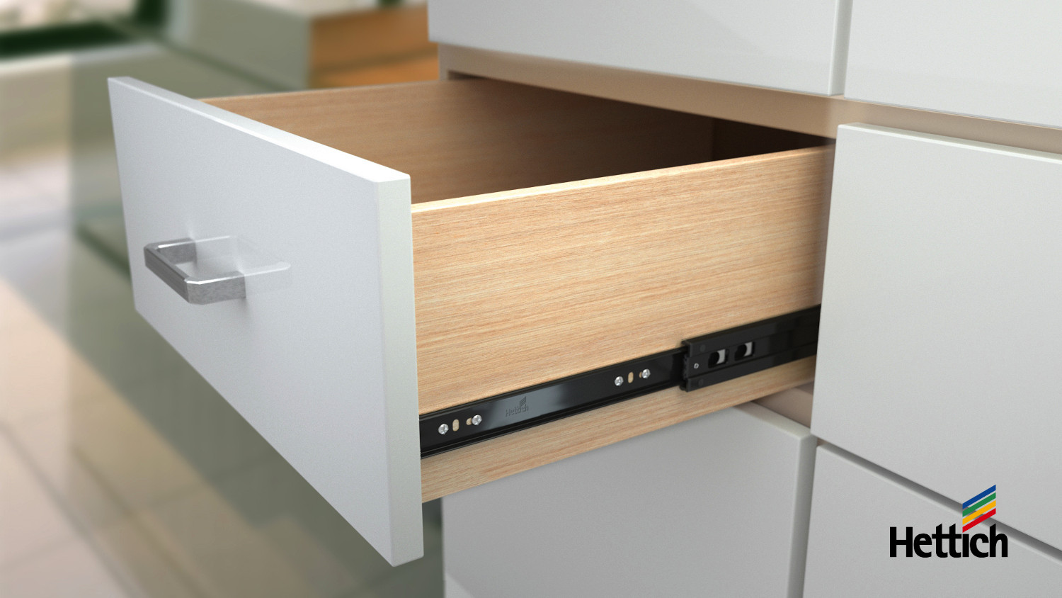 Hettich Kugelauszug KA 5632, Seitenmontage, Abmessungen (H x B) 46 x 12,7 mm, 500 mm, schwarz
