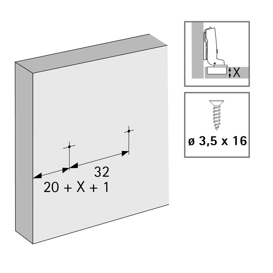 - Montage zum Anschrauben mit Senkkopfschrauben ø 3,5 x 16 mm