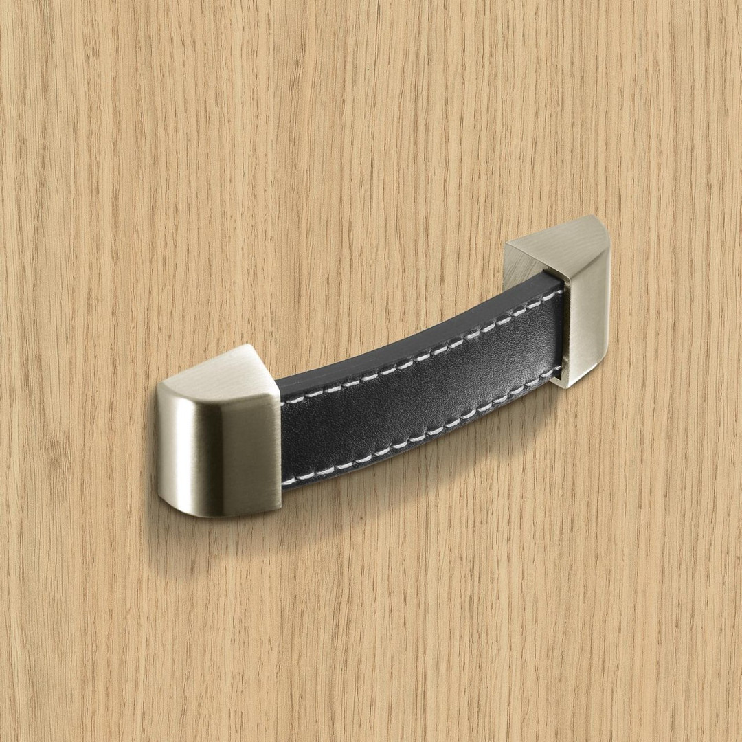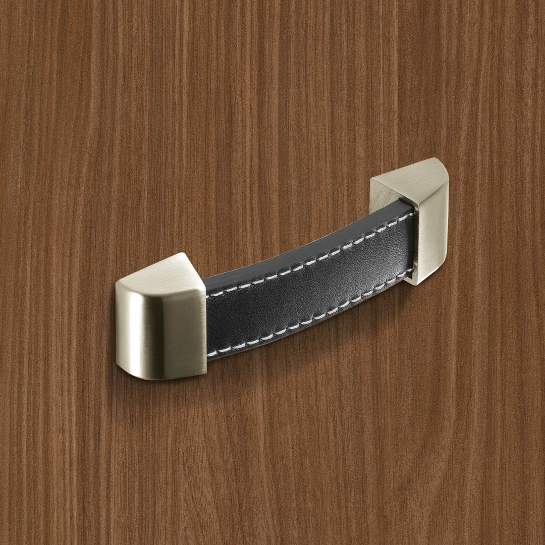 Hettich Möbelgriff "Agliano" - Leder braun / Edelstahl Optik gebürstet - BA 96mm