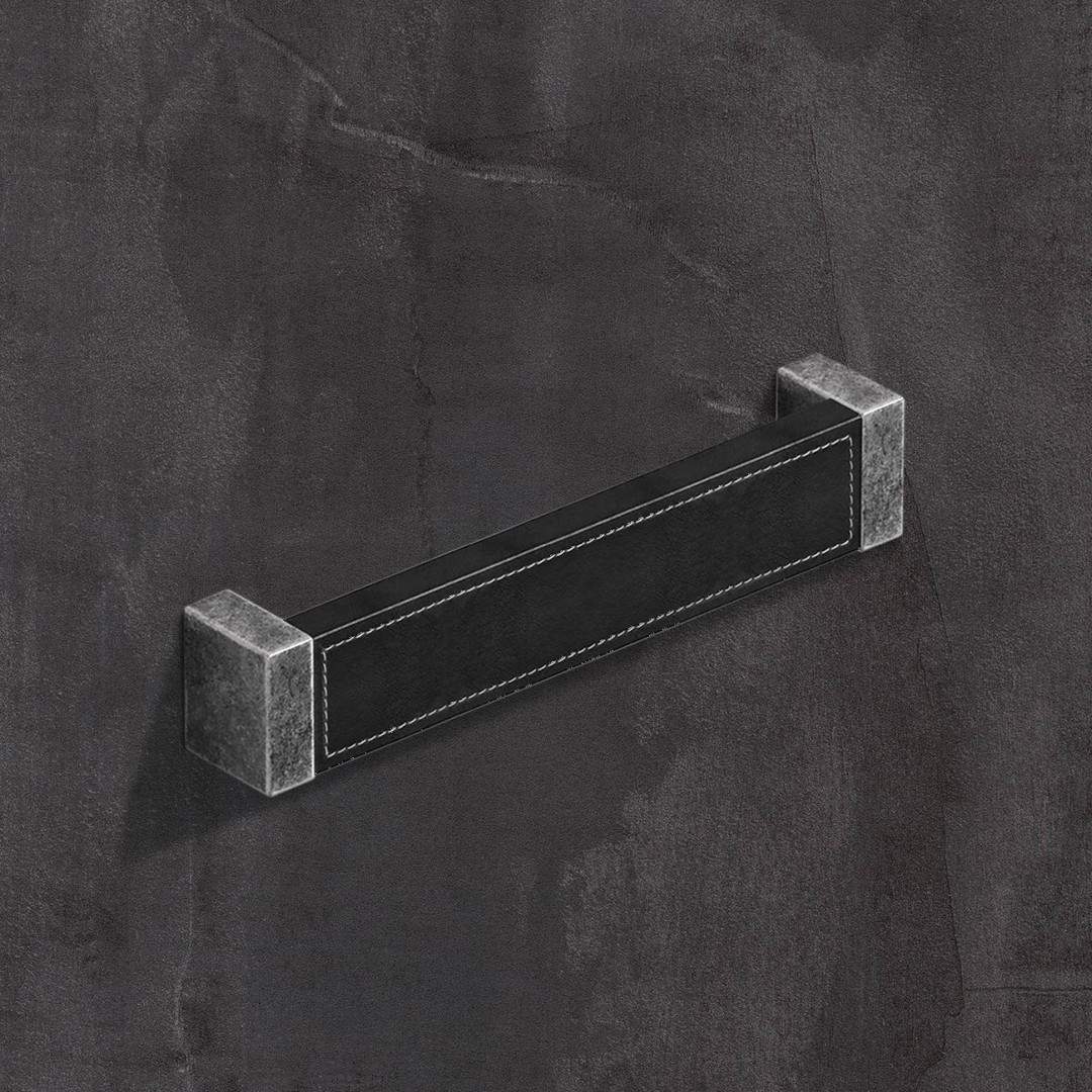 Griff Arago, Bohrabstand 192, L 208 mm, B 40 mm, H 33 mm, Leder schwarzgrau / Zinn Optik antik