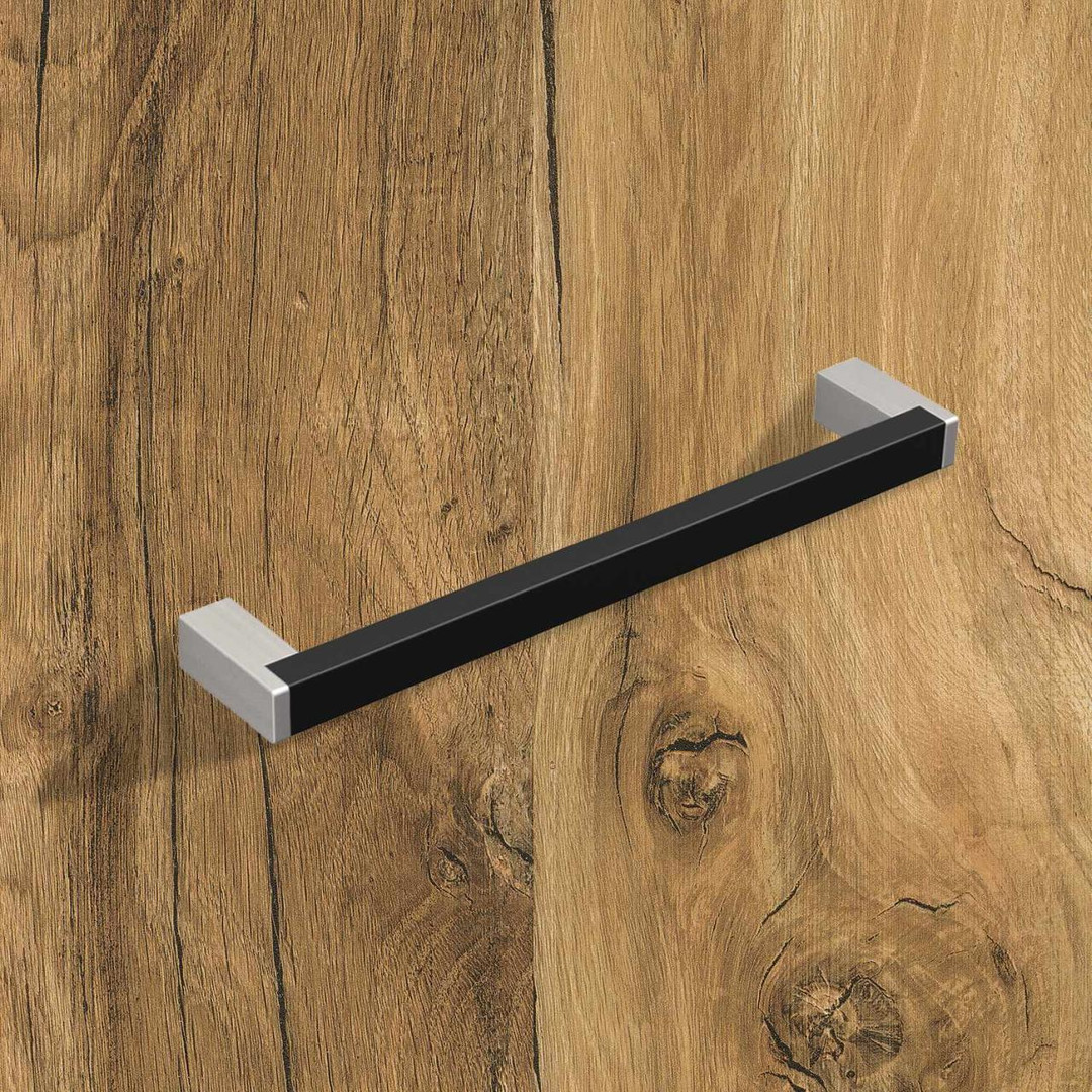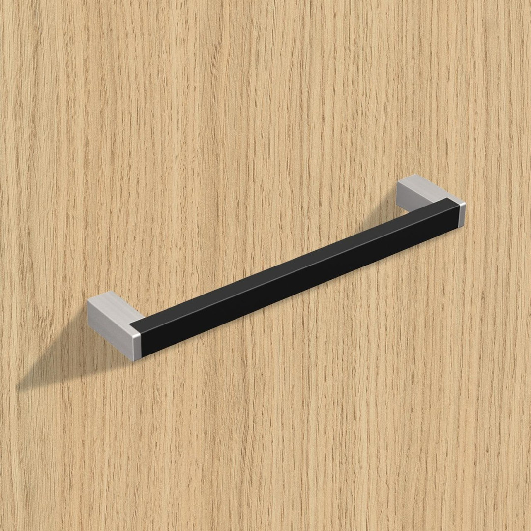 Hettich Möbelgriff "Bermeo" - Schwarz matt / Edelstahl Optik gebürstet - BA 192mm