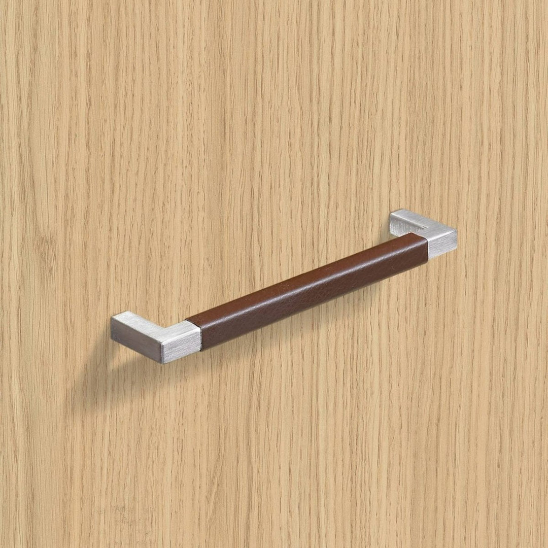 Hettich Möbelgriff "Getafe" - Leder hellbraun / Edelstahl gebürstet - BA 160mm