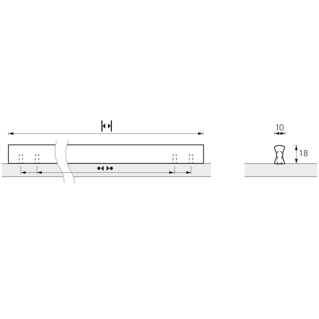 Griff Kervo, Bohrabstand 160 / 192 mm, L 216 mm, B 10 mm, H 18 mm, Aluminium eloxiert