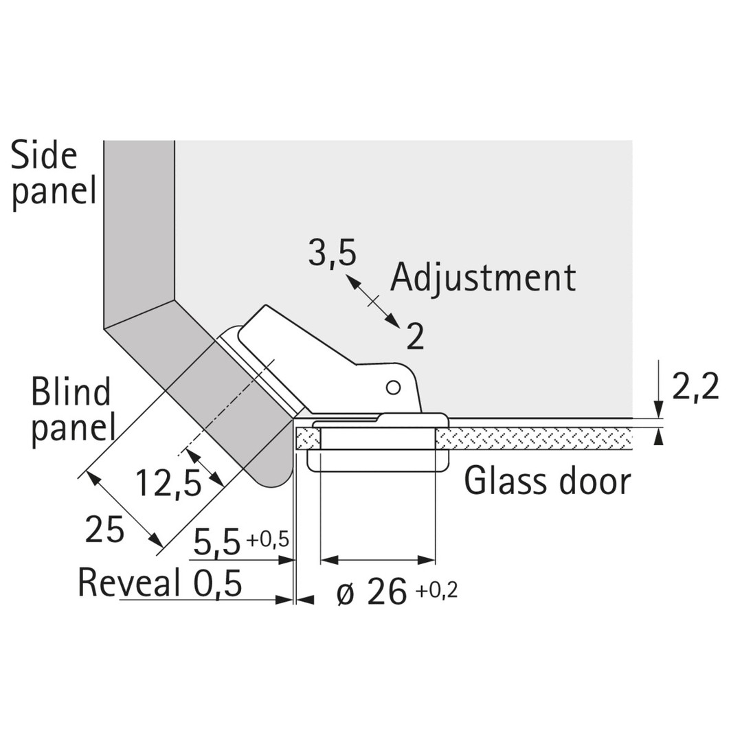 - Automatikscharnier mit Aufschiebetechnik und kurzem Seitenteil
