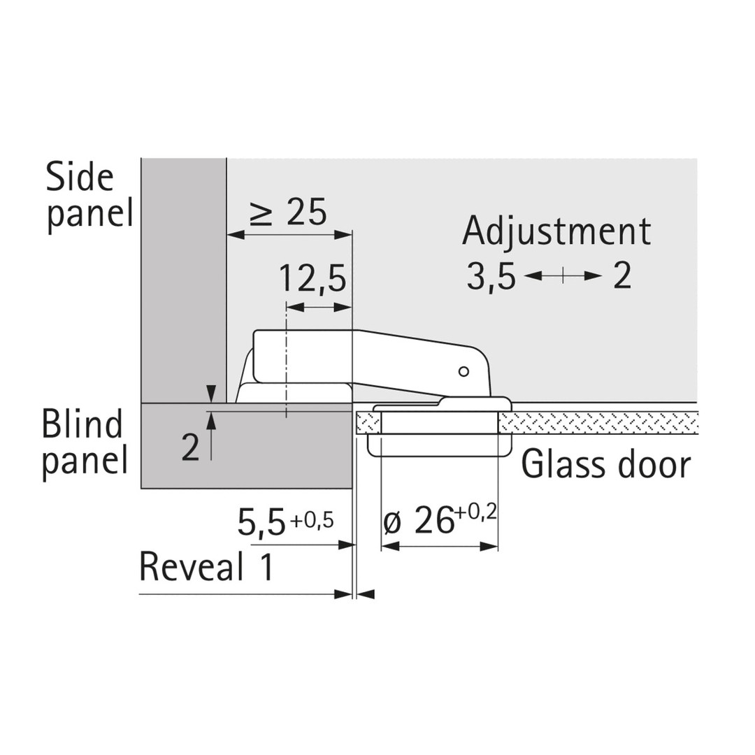 - Automatikscharnier mit Aufschiebetechnik und kurzem Seitenteil