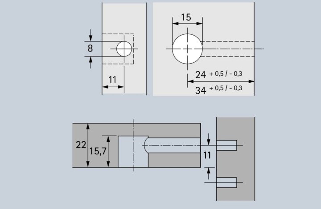 • Doppelte Sicherheit durch Innen- und Außenrastung - der Dübel wird immer zentrisch angezogen, ein Versetzen der Möbelteile ist somit ausgeschlossen!