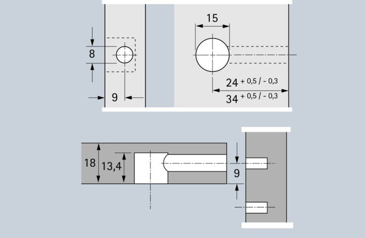 - Doppelte Sicherheit durch Innen- und Außenrastung - der Dübel wird immer zentrisch angezogen, ein Versetzen der Möbelteile ist somit ausgeschlossen!