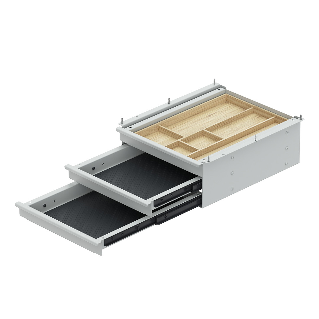 • Schubkastenelement für einfachen Zugriff unter der Tischplatte