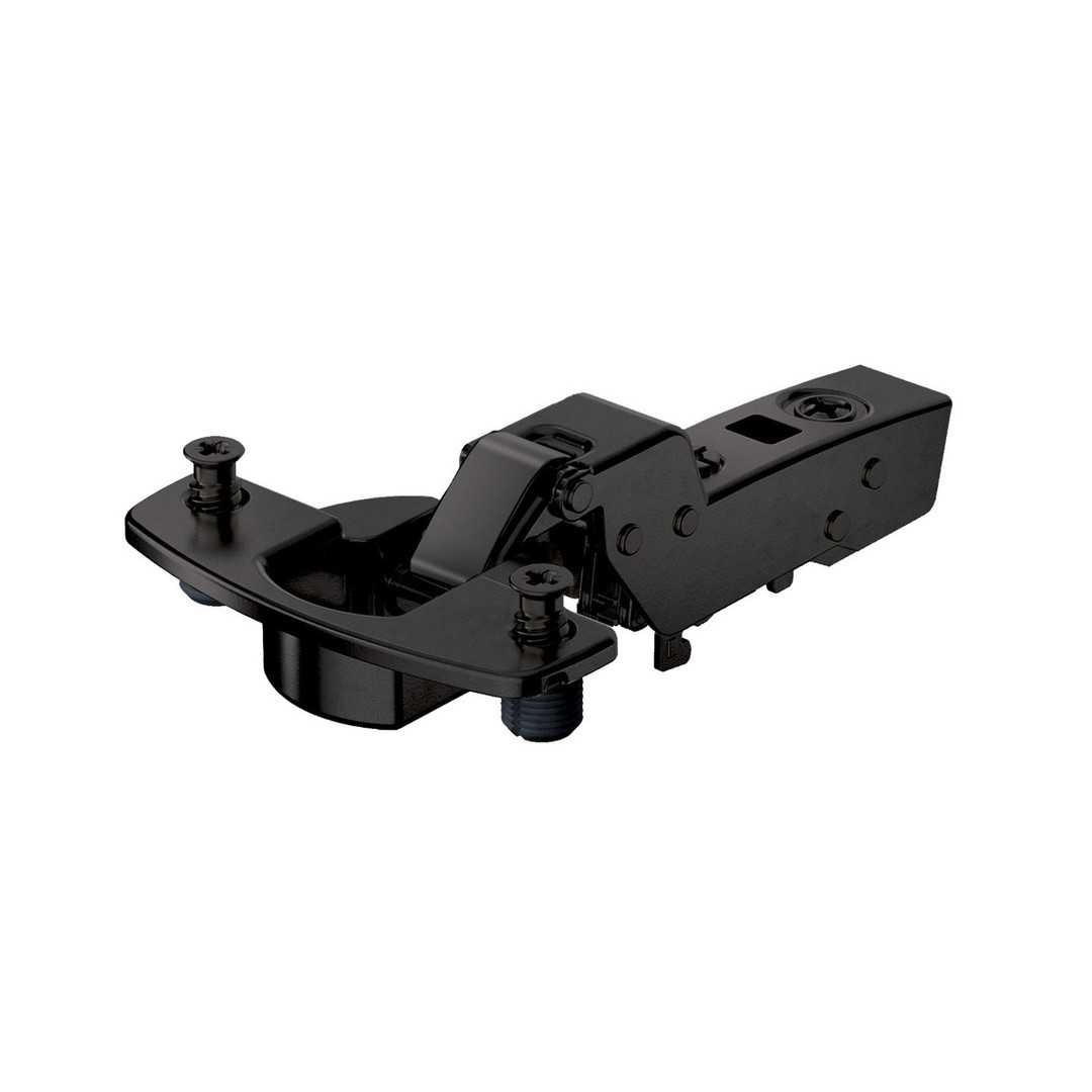 Hettich Sensys Dicktürscharnier, Türdicke bis 32 mm, mit integrierter Dämpfung (Sensys 8631i), in obsidianschwarz, einliegend, Öffnungswinkel 95°, TH-Bohrbild 52 x 5,5 mm, mit Spreizmuffen (ø 10 x 11)