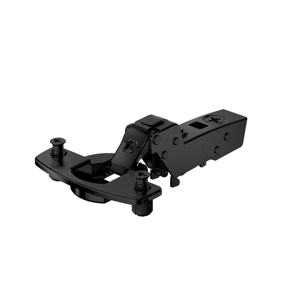 Hettich Sensys Dünntürscharnier, Türdicke ab 10 mm, mit integrierter Dämpfung (Sensys 8646i), in obsidianschwarz, einliegend, Öffnungswinkel 110°, Bohrbild TH 52 x 5,5 mm, mit Spreizmuffen (ø 10 x 8)
