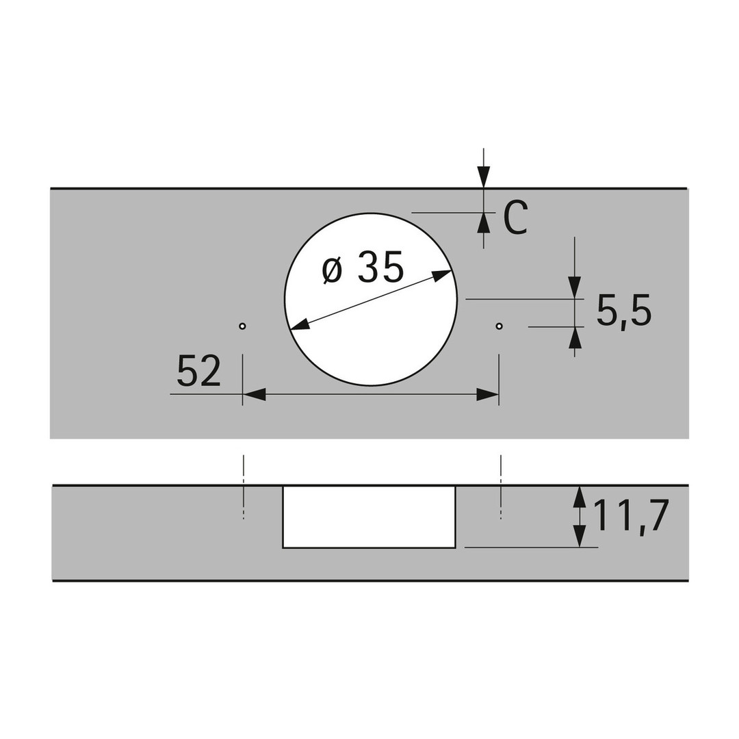 Ausführung Öffnungswinkel 165°, TH-Bohrbild 52 x 5,5 mm, zum Anschrauben (-)