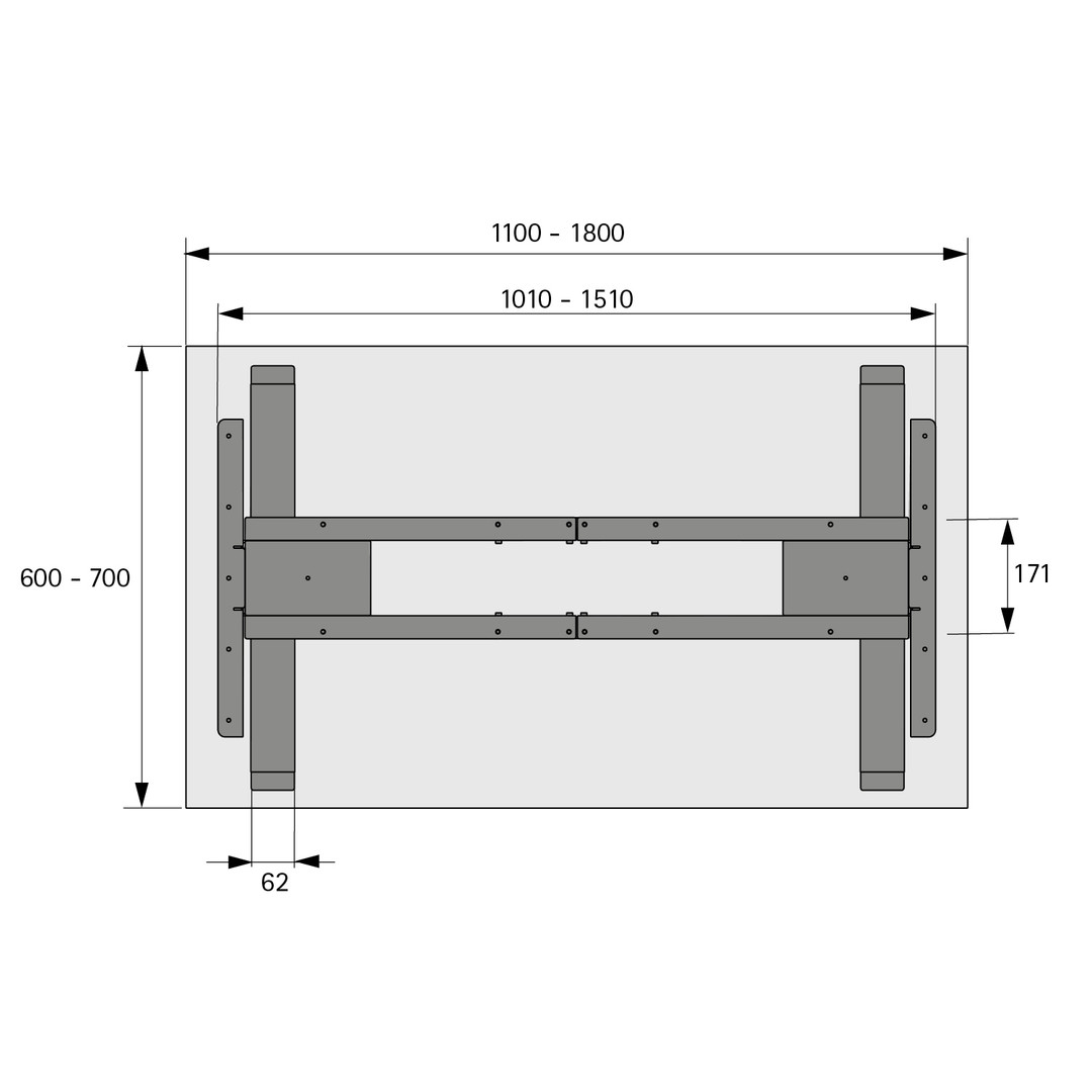 | Für Tischplattenbreite | 1100 - 1800 mm |