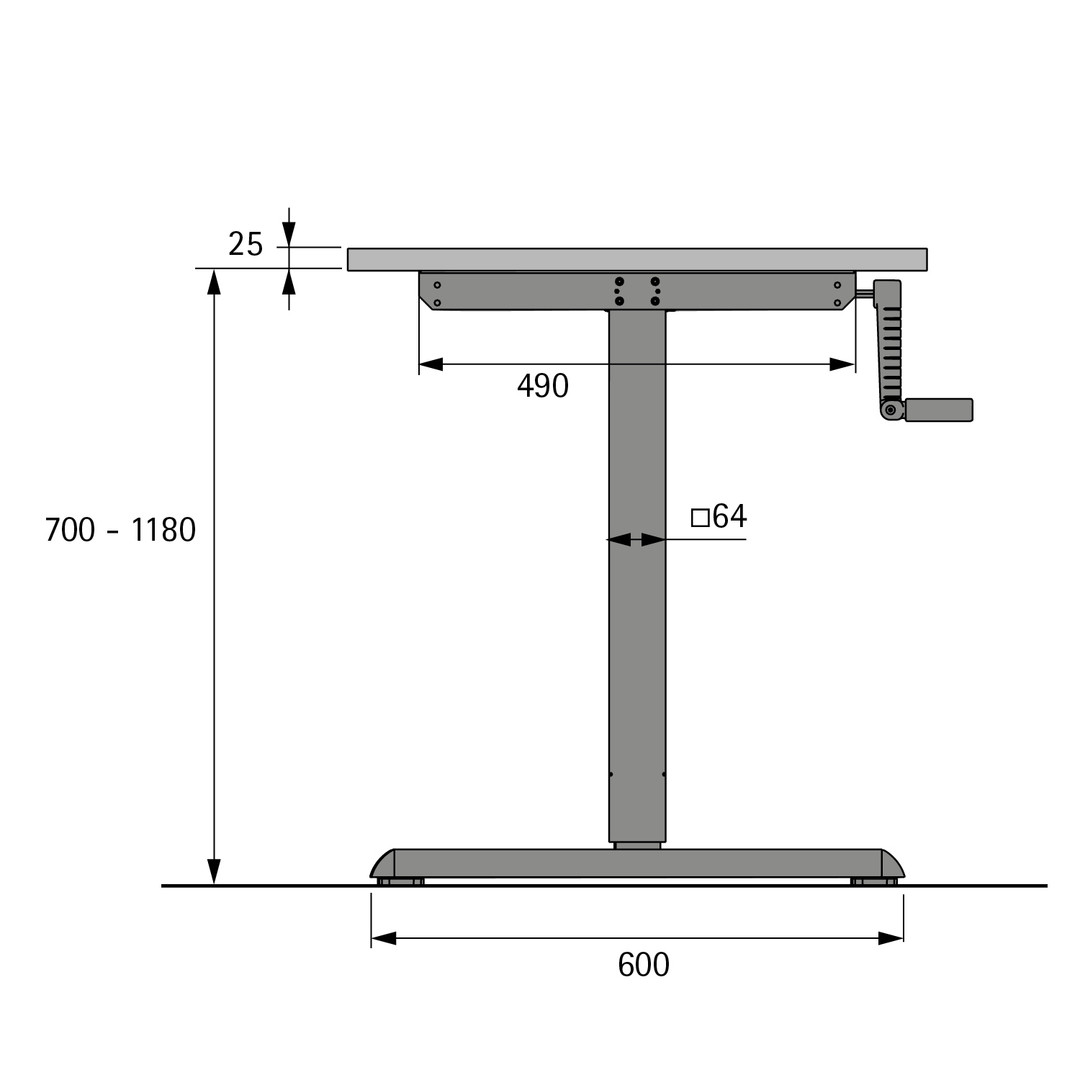 • Hubgewicht max. 60 kg bei gleichmäßiger Belastung des Tisches