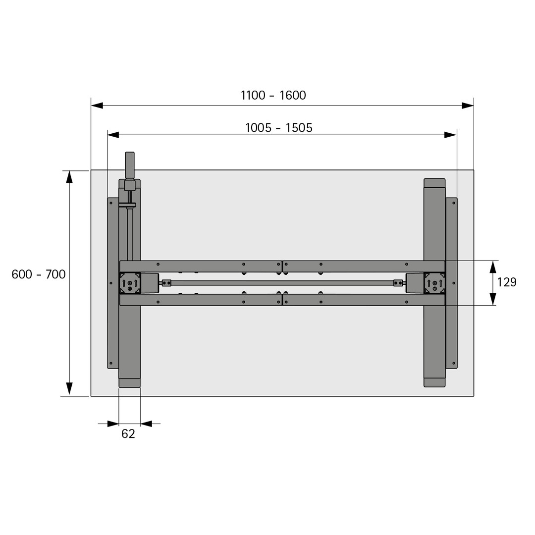 | Für Tischplattenbreite | 1100 - 1600 mm |