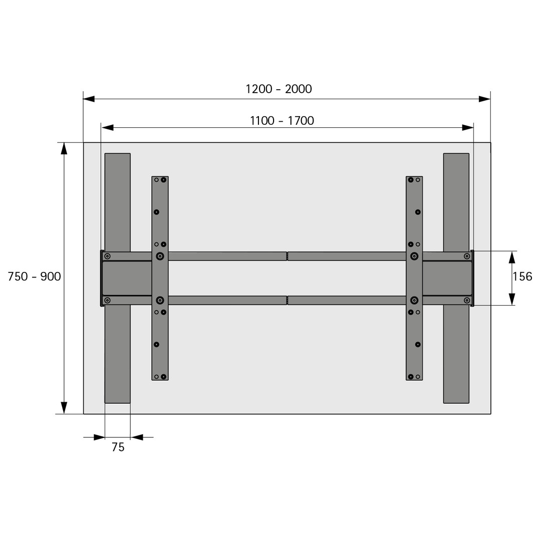 | Für Tischplattenbreite | 1200 - 2000 mm |