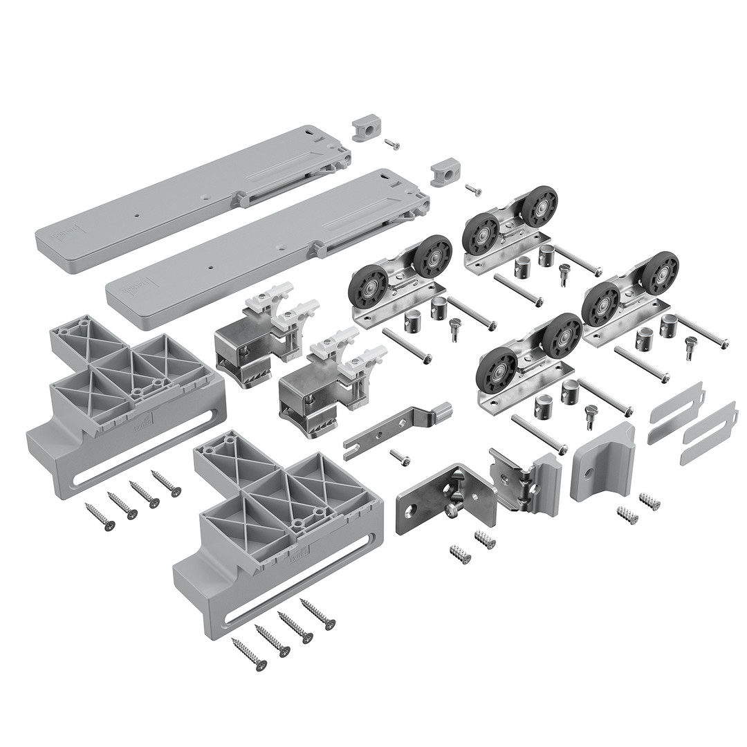 Hettich TopLine 1 Set Laufteile mit Dämpfung für 2-türigen Schrank, 75 kg