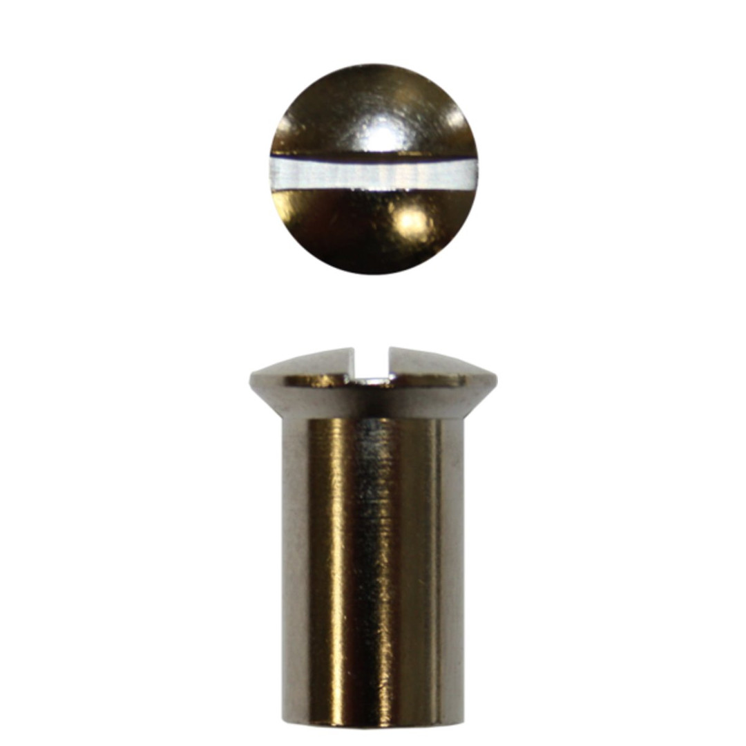 Linsensenk-Hülsenmutter, Kopf mit Schlitz, Messing vernickeltAbmessung: M5 x 15 ;VE: 1000 St