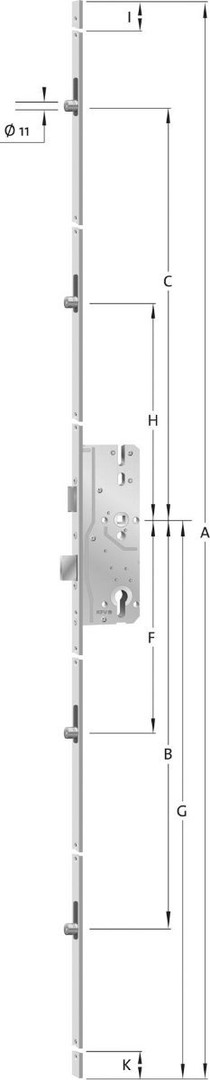 Mit fünffacher Rollzapfen-Riegel-Arretierung, vorgerichtet für PZ, Entfernung 92 mm, 10 mm Nuss, rechts und links verwendbar durch umstellbare Falle, Stulpausführungen: Flachstulp, hell verzinkt.