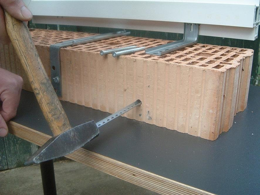 Lochschiene wird in den Stein gebohrt und sorgt so für die verstärkte Befestigung der EL- und/oder WU-Anker.
