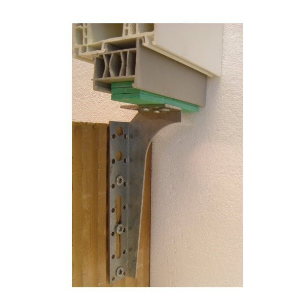 Kurzer Schenkel zur Befestigung am Fensterahmen, langer Schenkel am Mauerwerk.
