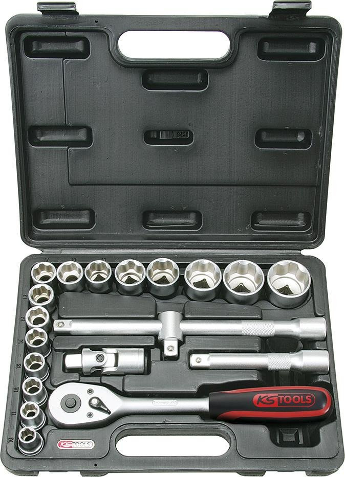 Steckschlüssel-Garnitur 1/2", 20 tlg. aus Chrom-Vanadium-Stahl, mattsatiniert