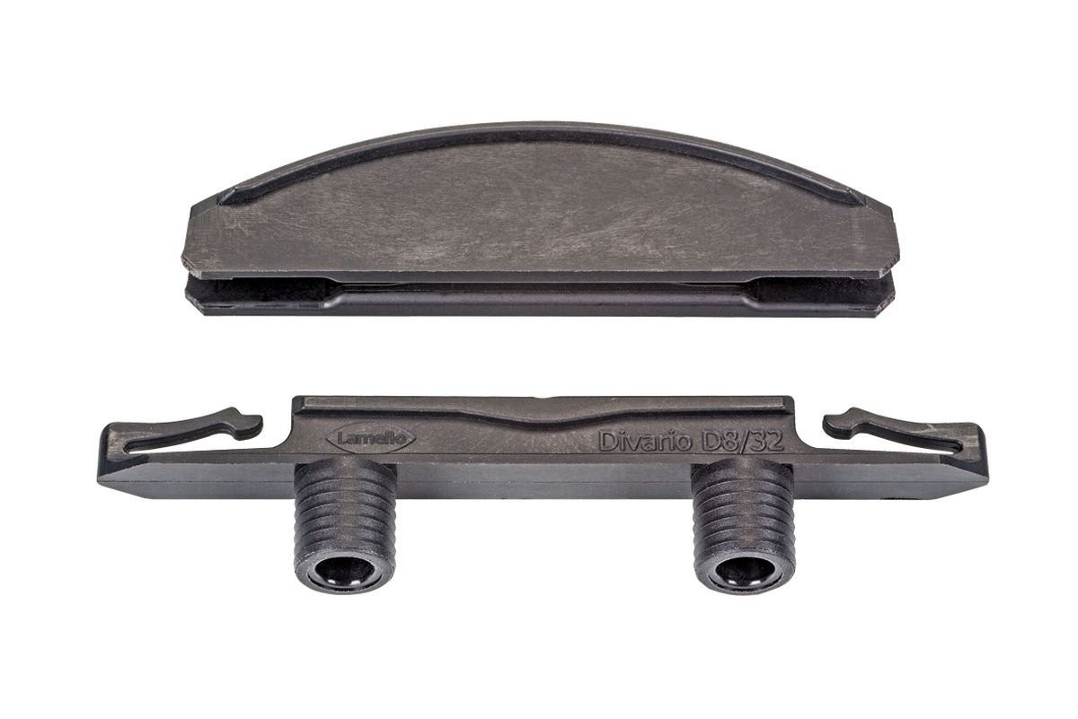 - Schmaler Verbinder erlaubt den Einsatz in Tablarböden ab 19 mm