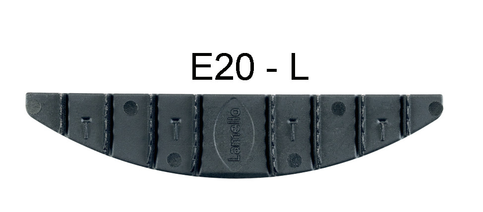 E20 ist ein selbstspannender Verbinder, welcher mit jeder Lamello Nutfräsmaschine eingesetzt werden kann. E20 wird mit einem Hammer in die 4 mm Nut eingeschlagen. Der seitliche Rippenverlauf verankert sich dabei im Werkstück und spannt die Werkstücke zusammen. So dient E20 als perfekte Verleimhilfe in der Werkstatt oder auf der Baustelle. E20-L ist geeignet für Flächenverbindungen wie bspw. Bilderrahmen, Sockel- oder Plattenverlängerungen. In der Kante wird die E20-H eingesetzt und dient bspw. als Sockelverbinder.