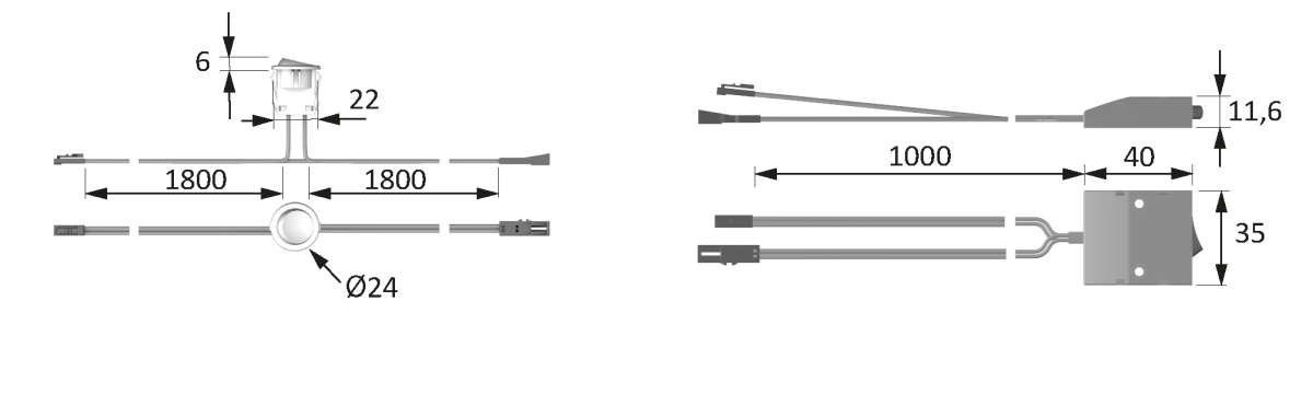 LED Anbauwippschalter sw 12VDC, max. 36W, 2x1m LTG M1