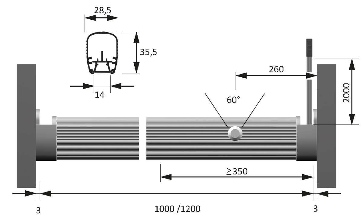 LED Lite Pipe 1.2m; Alu, ww 12VDC 5.5W; 2.2m Ltg. sw M1