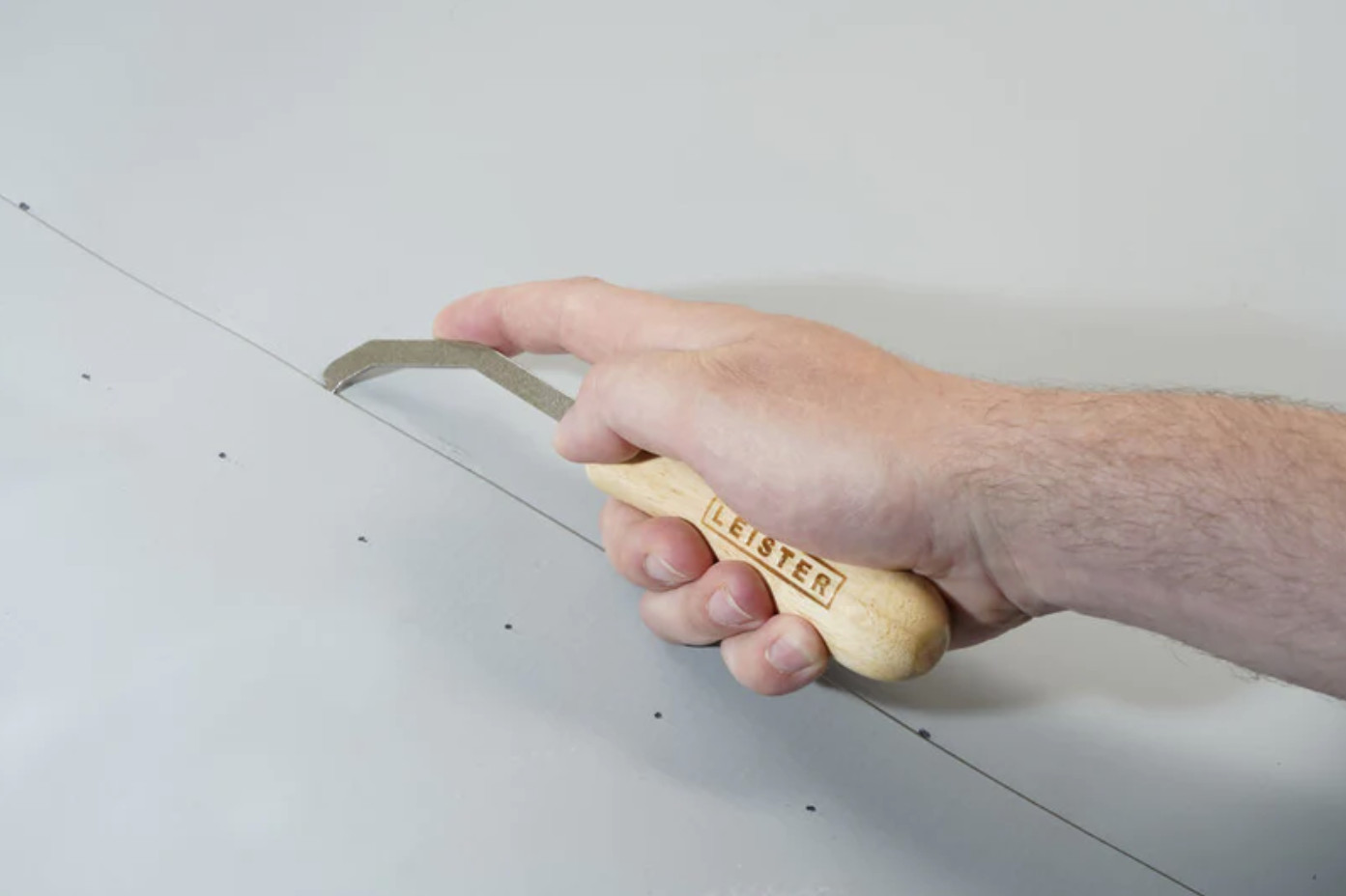 Die Membrane wird beim Prüfen nicht beschädigt. Der ergonomische Holzgriff des Schweißnaht-Prüfers von Leister liegt gut in der Hand und ist somit für länger andauernde Prüfungen optimal geeignet.