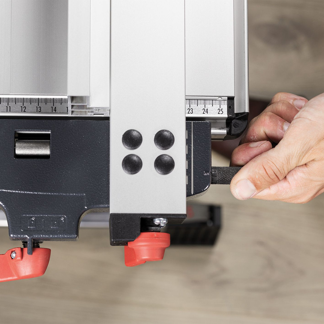 - Einfache Fixierung: Die Anschlagschiene kann sicher und einfach am Tischprofil fixiert werden.