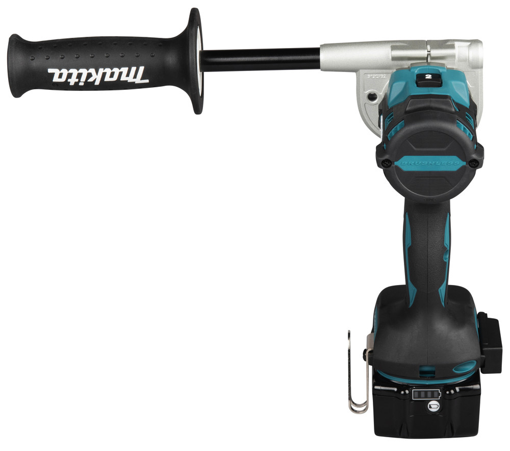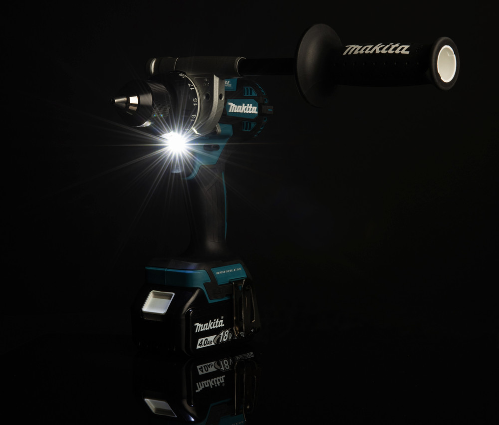 Kraftvoller, sehr kurzer 18V Akku-Bohrschrauber mit einem 2-Gang-Vollmetall-Planetengetriebe und einem bürstenlosen Motor. Mit Metall-Bohrfutter und Seitengriff. Eine ideale Wahl für Anwendungen, welche ein hohes Drehmoment erfordern. Inkl. leuchtstarker Doppel-LED mit Vor- und Nachglimmfunktion.
