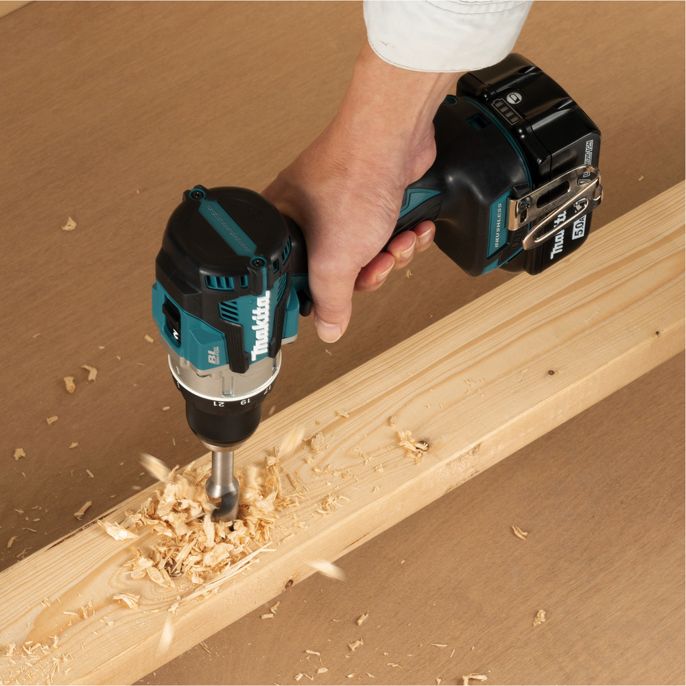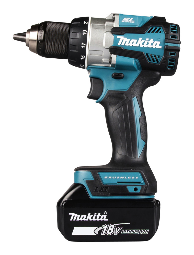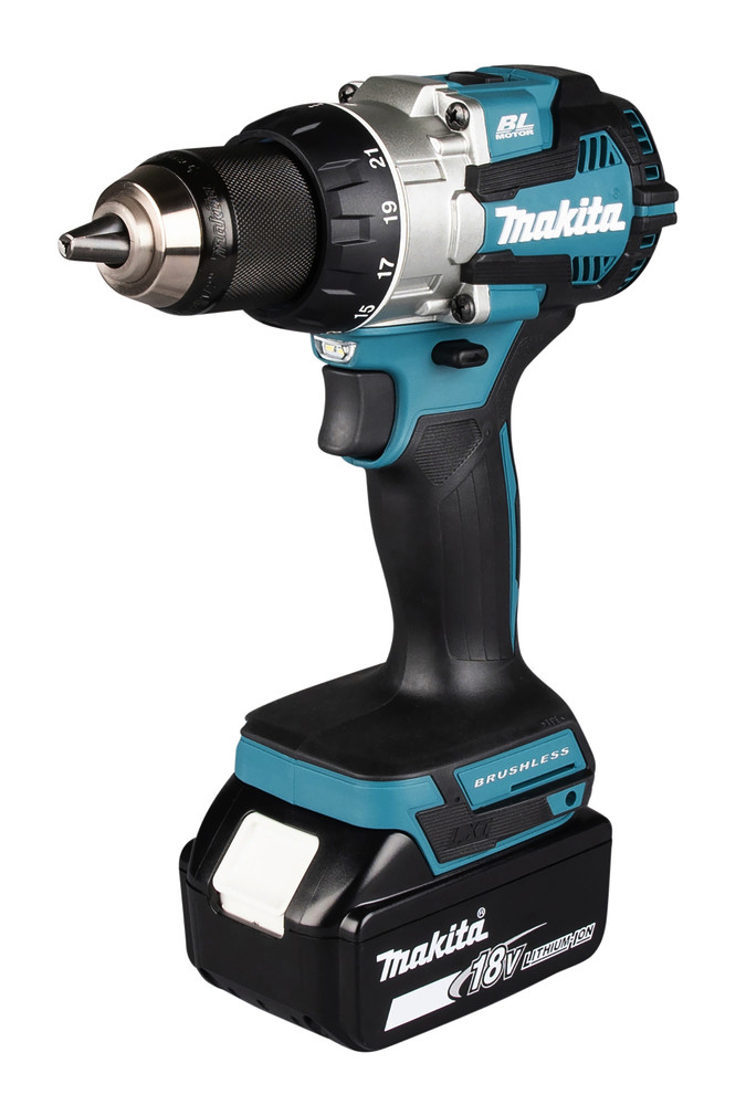 Bürstenloser Akku-Bohrschrauber mit 18V und einem neu konstruierten Getriebe mit sehr kurzer Bauform. Das max. Drehmoment von 110 Nm lässt sich in 21 Stufen einstellen. Eine leuchtstarke Doppel-LED mit Vor- und Nachglimm-Funktion sorgt für gute Sicht. In Holz können Löcher bis 38 mm ø gebohrt werden. Der Durchmesser bei Bohrungen in Metall liegt bei 13 mm.