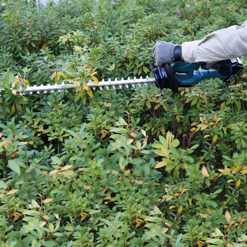 Die leichte Akku-Heckenschere DUH507 bringt inkl. einem BL1860B 6,0 Ah Akku 3,0 kg auf die Waage. Mit einem eingesetzten Akku ist diese optimal ausbalanciert und beugt dadurch auch bei langem Arbeiten Ermüdungserscheinungen vor. Die optimale Klingenform ermöglicht das Schneiden von Zweigen bis zu einer Dicke von 15,0 mm. Der Sicherheitsschalter im oberen Handgriff ist dank der verbesserten Bauform in jeder Lage, ohne große Anstrengung, festzuhalten.