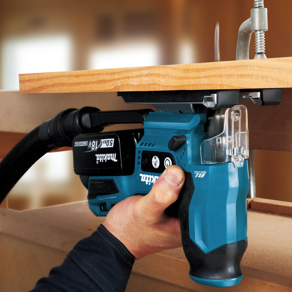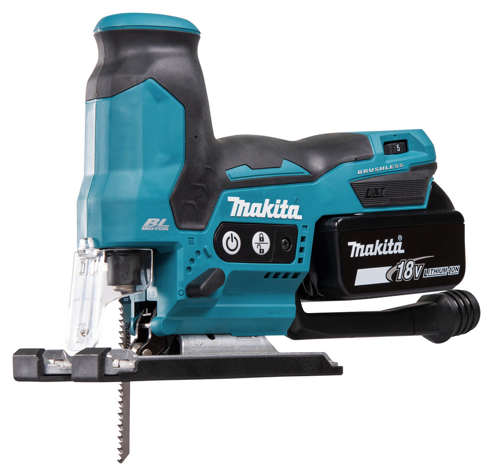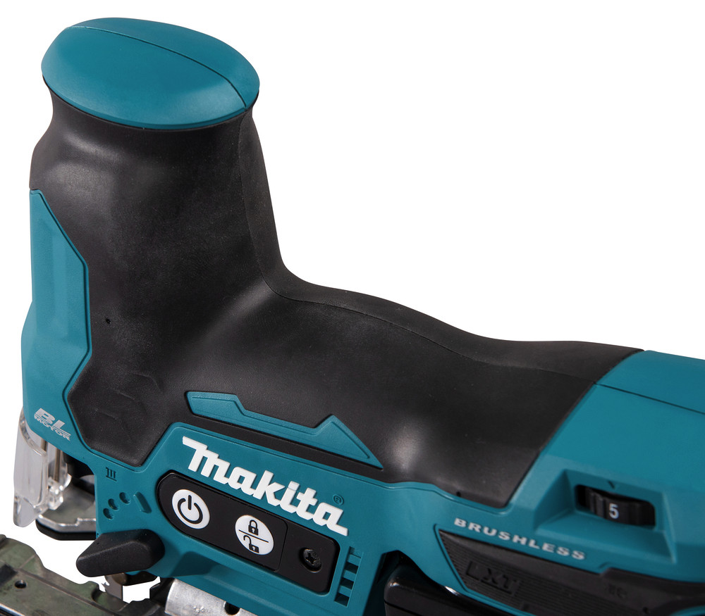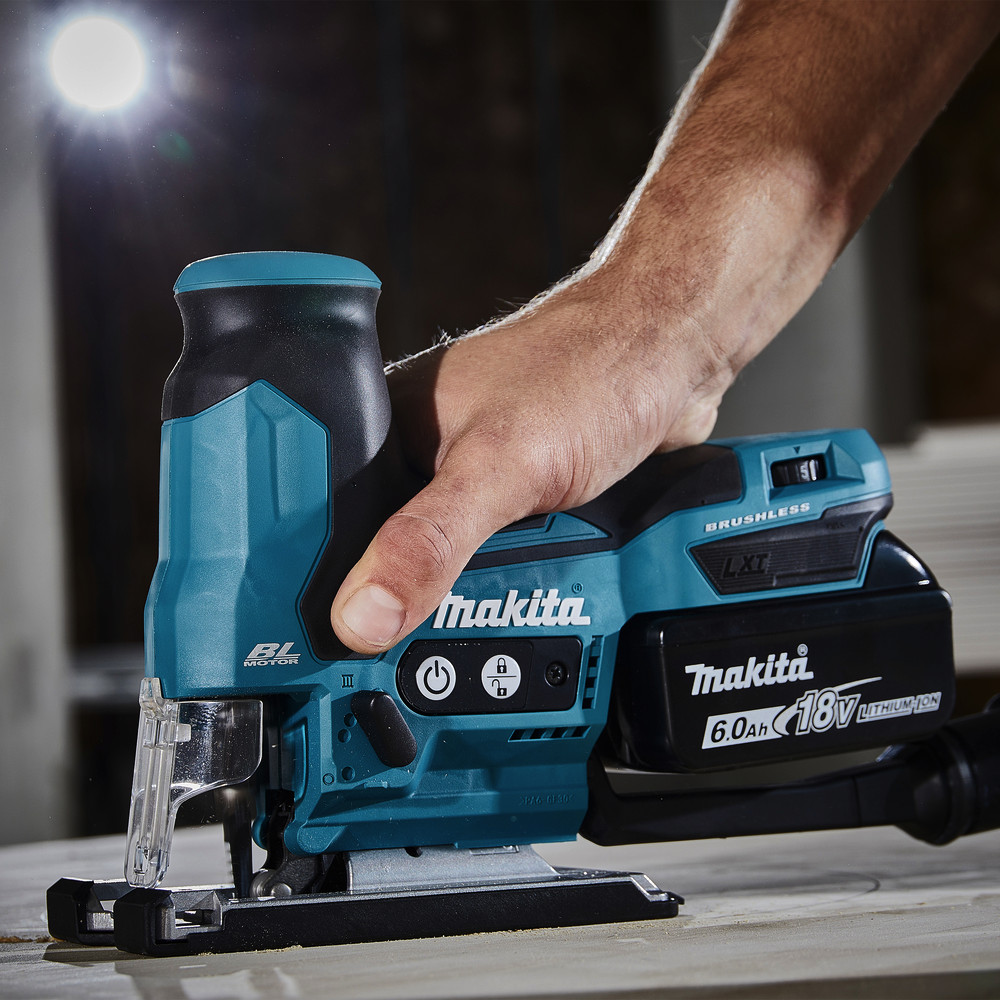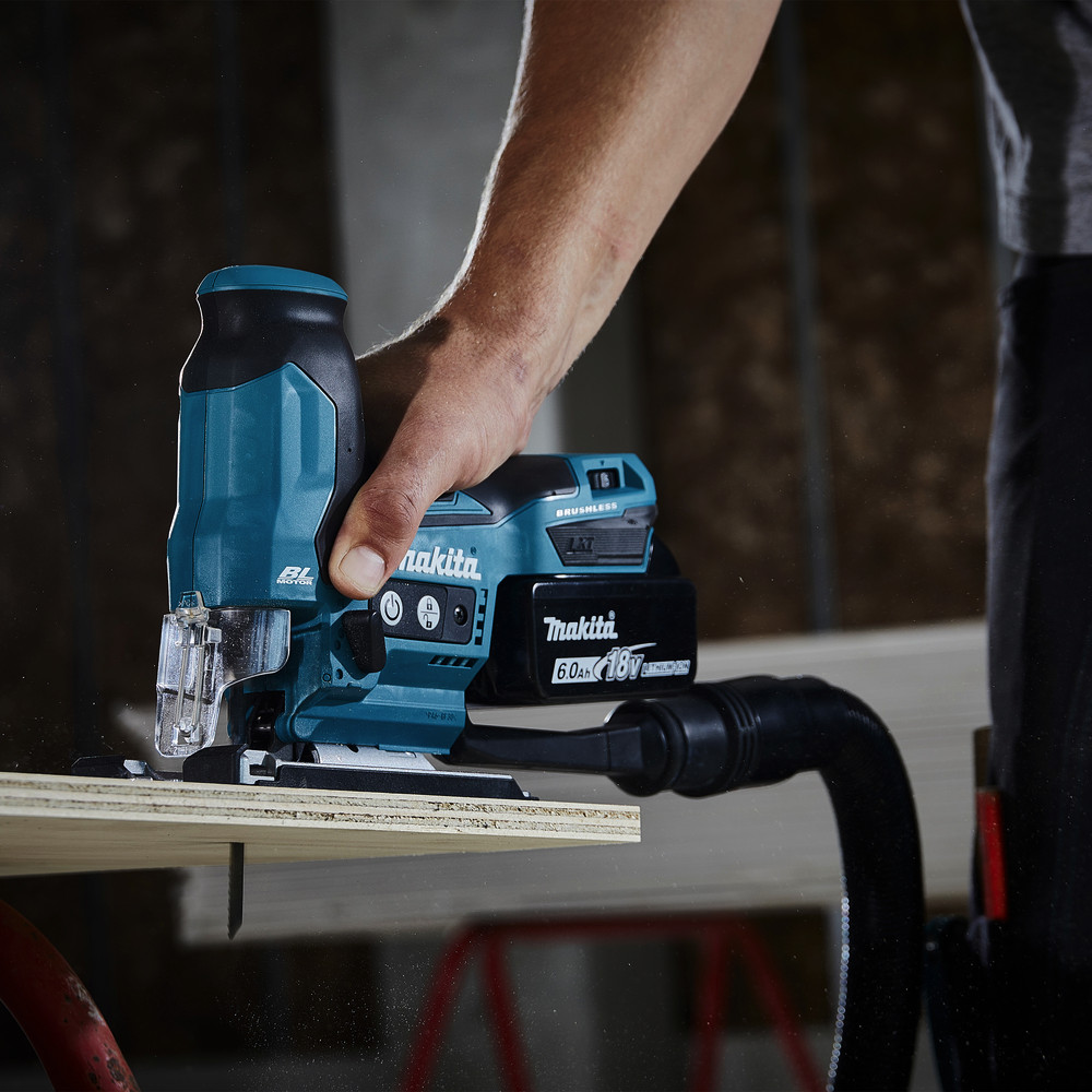 Leistungsfähige Akku-Pendelhubstichsäge mit dimmbarer LED-Beleuchtung und werkzeuglosem Sägeblattwechsel
