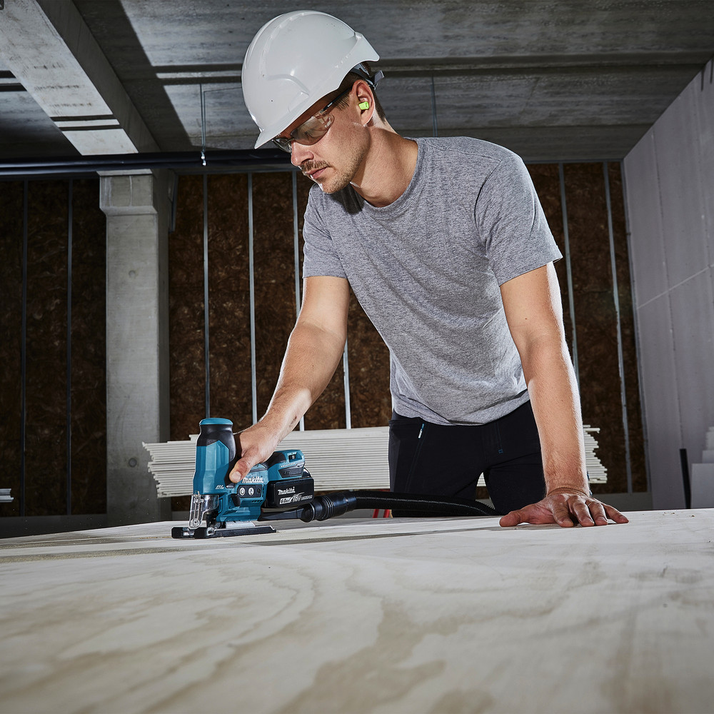 Leistungsfähige Säge mit dreistufiger Pendelhubeinstellung plus Neutralstellung und werkzeuglosem Sägeblattwechsel. Inkl. Dimmfunktion für Arbeiten Überkopf: Durch Halten des Standby-Schalter kann die LED-Helligkeit eingestellt werden. Die Hubgeschwindigkeit kann je nach Werkstoff zwischen 800 und 3.000 min-1 eingestellt werden. Die Hubhöhe liegt bei 23 mm und ermöglicht eine Schnittleistung von 135 mm in Holz sowie 10 mm in Stahl.