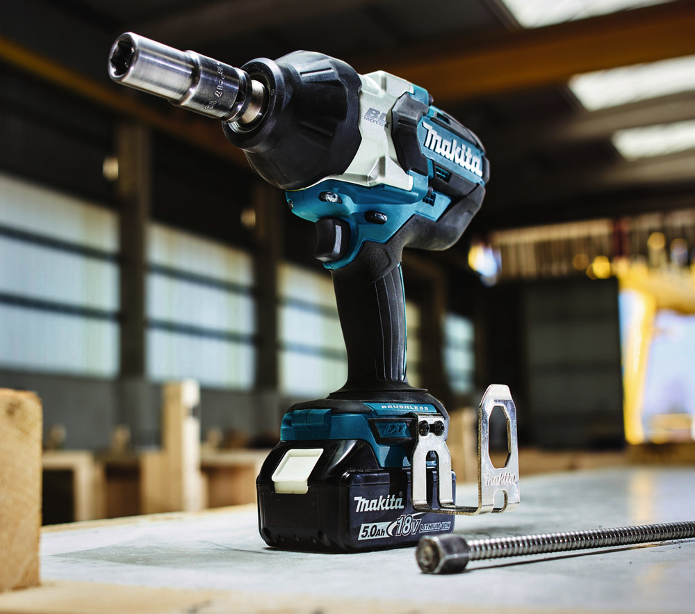 Ein kraftvoller bürstenloser Schlagschrauber 1/2" mit einem Anzugsdrehmoment von bis zu 1.000 Nm. Drei verschiedene Drehzahleinstellungen. Ausgestattet mit einem LED-Arbeitslicht für zusätzliche Beleuchtung. Dieses Gerät ist ideal für Anwendungen, die ein hohes Anzugsdrehmoment erfordern.