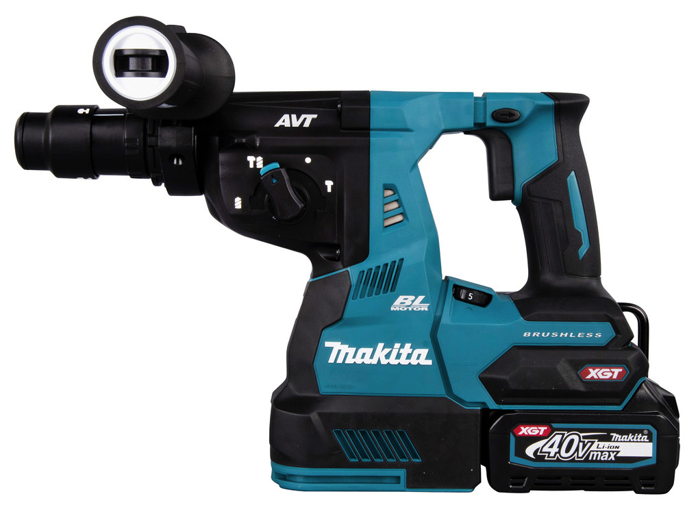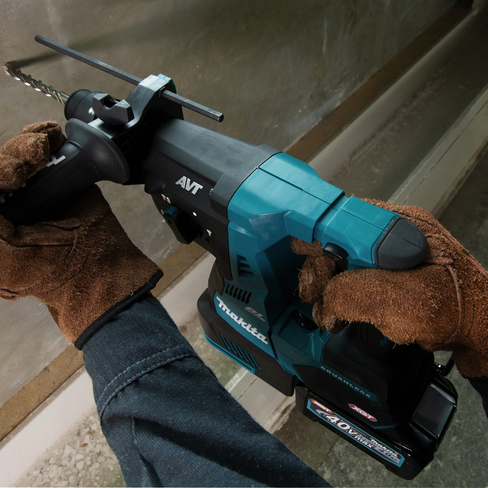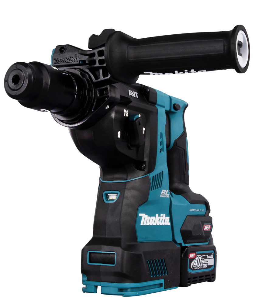 Leistungsstarker 40 V max. Akku-Kombihammer mit SDS-PLUS-Werkzeugaufnahme. Der maximale Bohrdurchmesser beträgt 28 mm. Die Maschine verfügt über einen Drehstopp, damit auch leichte Meißelarbeiten möglich sind. Mit AVT zur Reduzierung von Vibrationen.