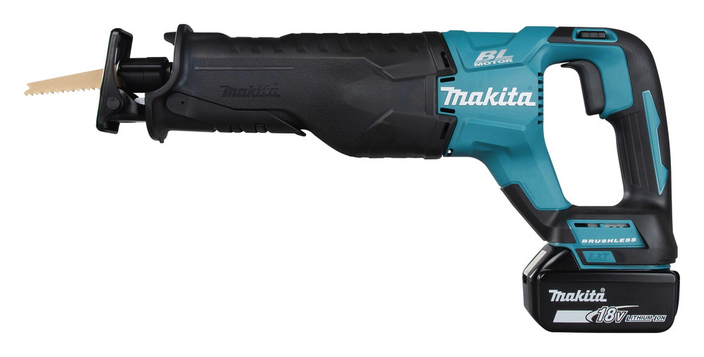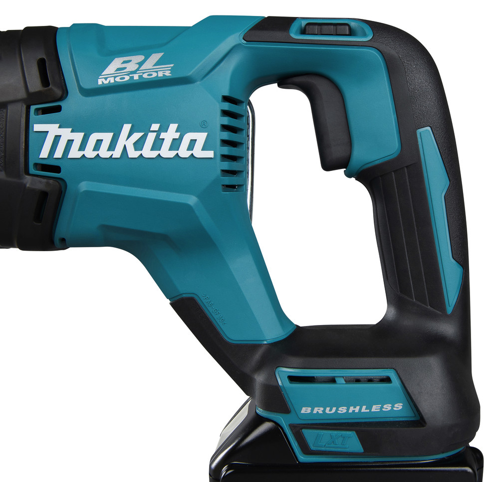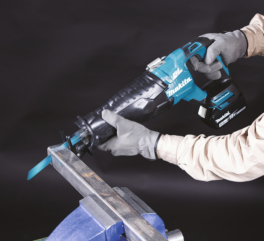 Eine leistungsfähige, bürstenlose Reciprosäge für professionelle Anwendugen, Geeignet für funkenfreies und spurstabiles Schneiden von Metall und Abrissarbeiten, Sehr schneller Sägefortschritt durch Hubhöhe von 32 mm, Leerlaufhubzahl in zwei Stufen 0-2,300 min-1 bzw, 0-3,000 min-1 einstellbar, Werkzeugloser Sägeblattwechsel,