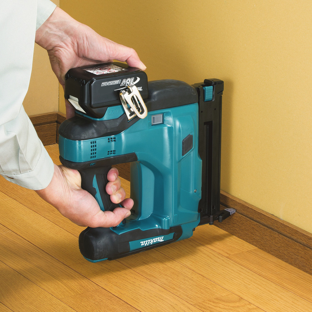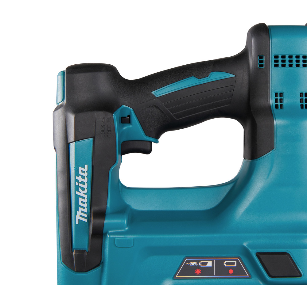 Ein akkubetriebener Stauchkopfnagler. Der eingebaute Kompressor sorgt für eine Anwendung ähnlich eines Druckluftnaglers. Ideal für End- und Trimmarbeiten einschließlich der Montage von Paneelen und Besätzen. Geeignet für Nägel mit einer Länge von 15 bis 50 mm.
