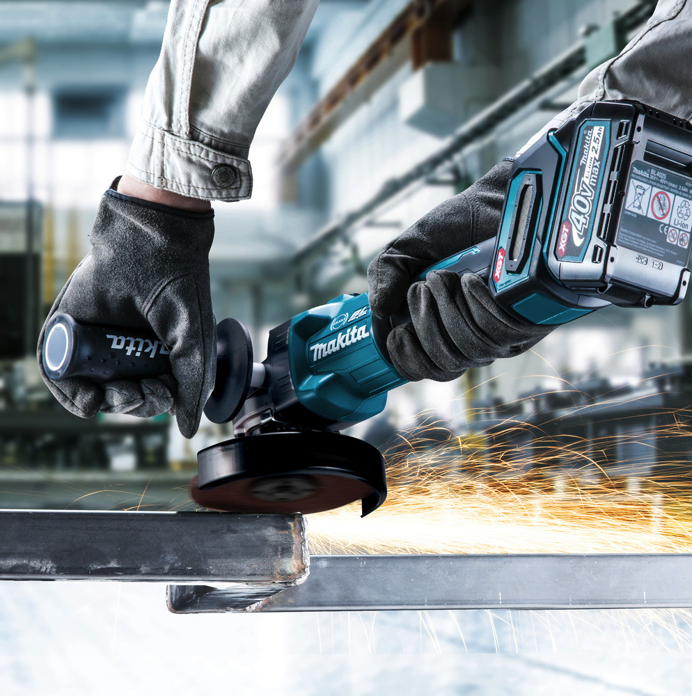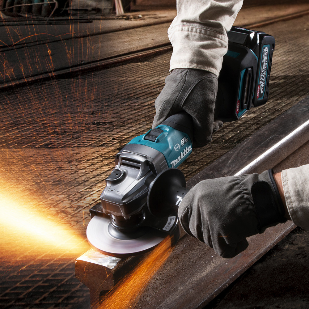 Leistungsstarker 40 V max. Akku-Winkelschleifer für schwere Trenn- und Schrupparbeiten. Die AFT-Technologie verhindert Rückschläge der Maschine bei blockierendem Werkzeug. Mit Motorbremse. Das XPT Schutzsystem verhindert das Eindringen von Schmutz und Spritzwasser.