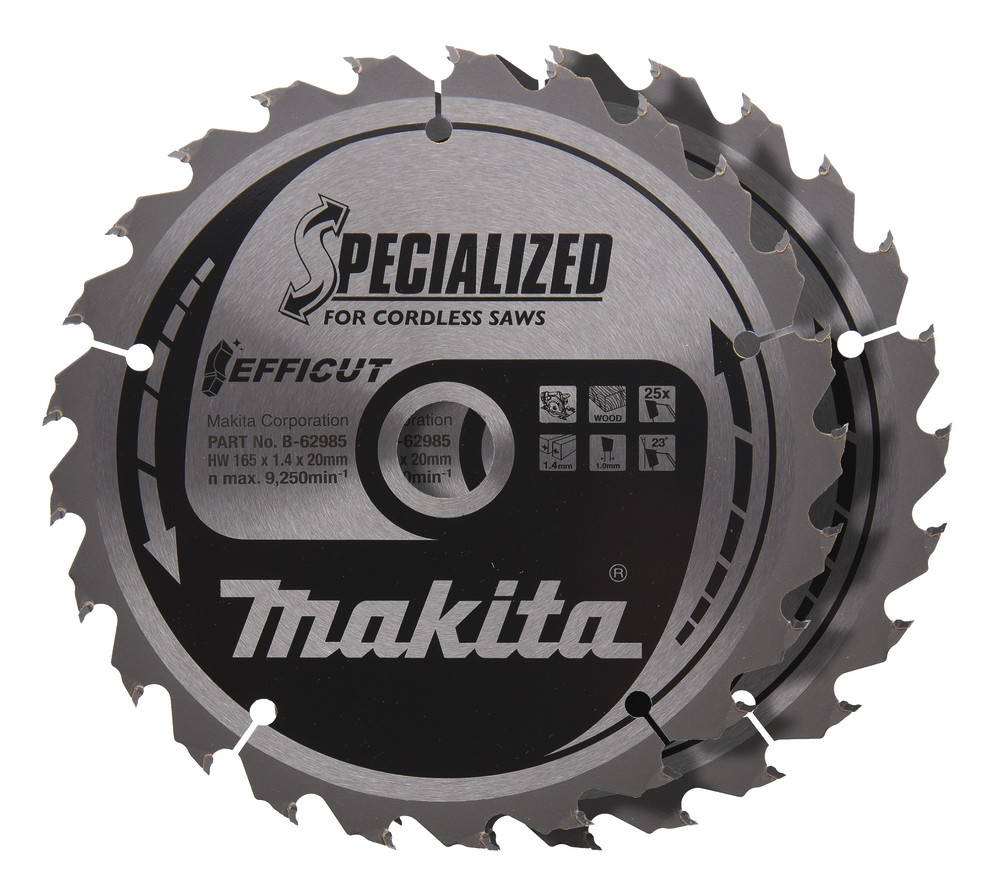 MAKITA HM-Kreissägeblatt Efficut 2er-Pak 165x20mm Z-25 für Akku-Säge