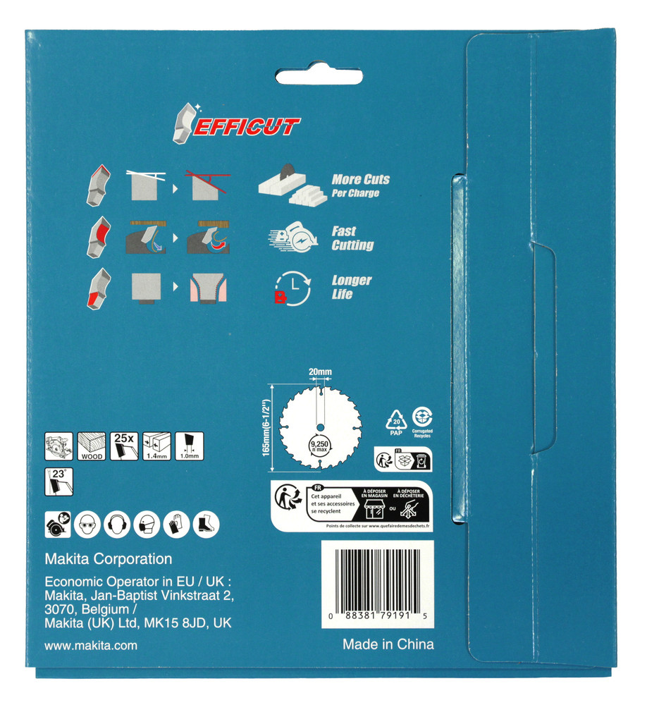 MAKITA HM-Kreissägeblatt Efficut 2er-Pak 165x20mm Z-25 für Akku-Säge
